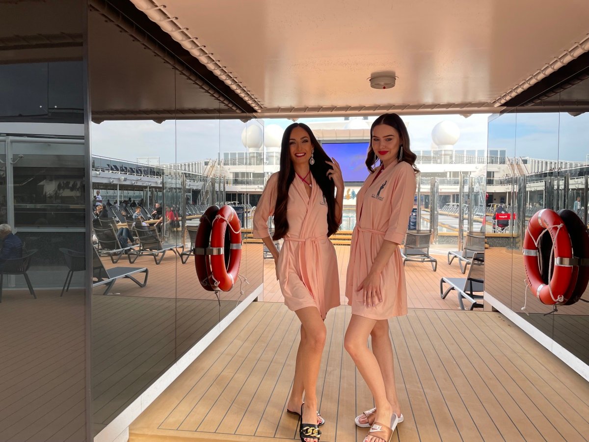 Každý večer pak v krásných šatech oděvní designérky Jiřiny Tauchmanové společně budily zájem všech pasažérů i posádky luxusní zaoceánské lodi MSC EURIBIA.