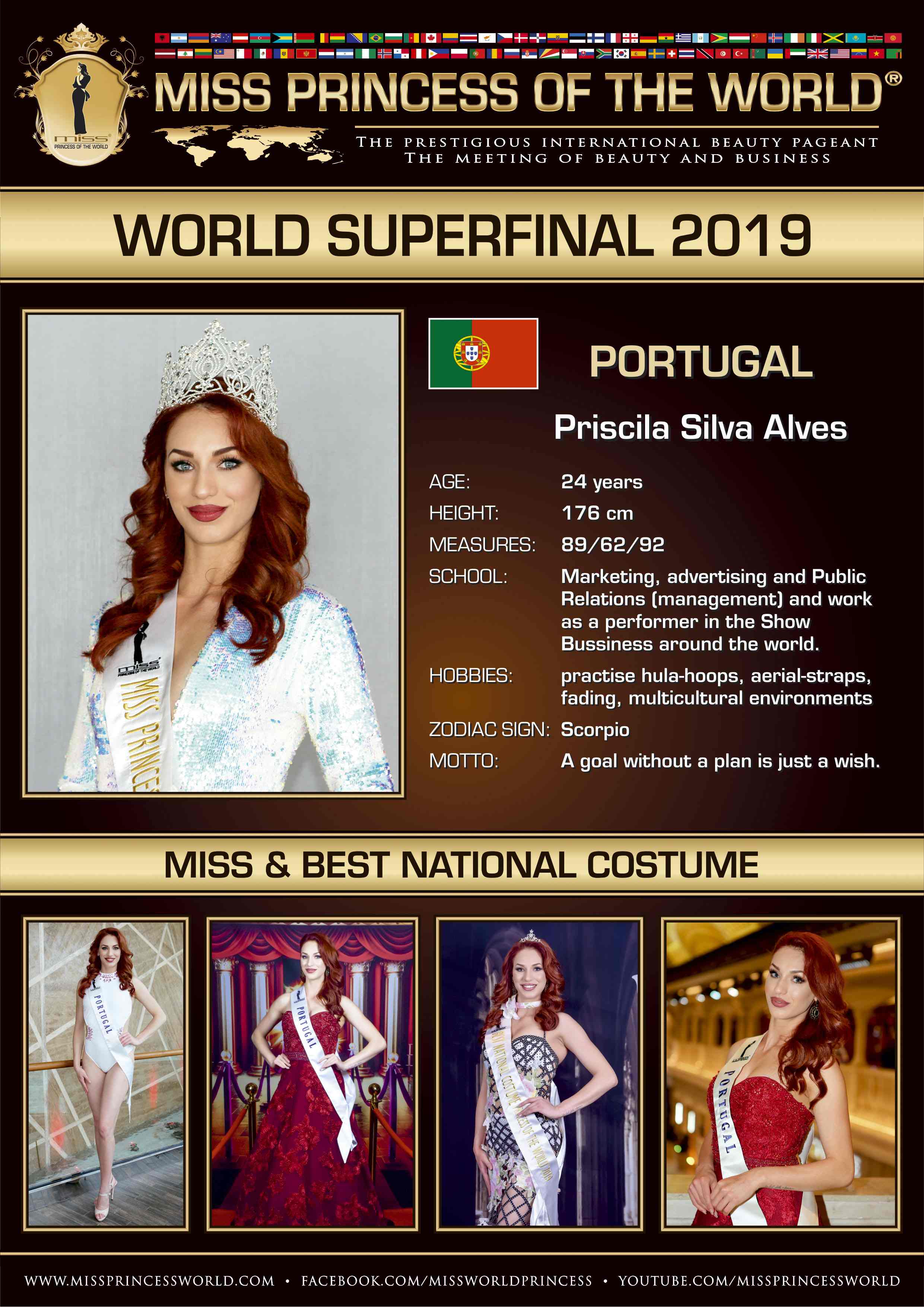 Winner is Priscila Silva ALVES from Portugal, Priscila won Best National Costume too.